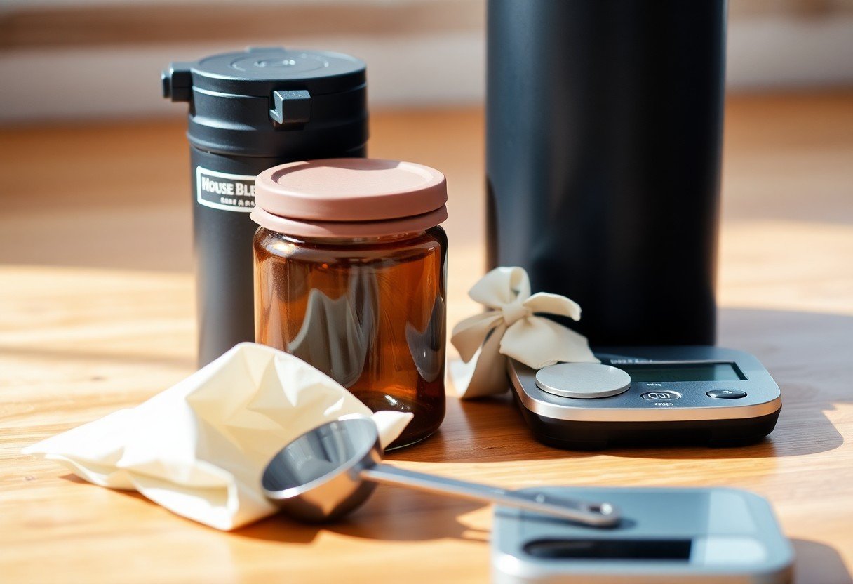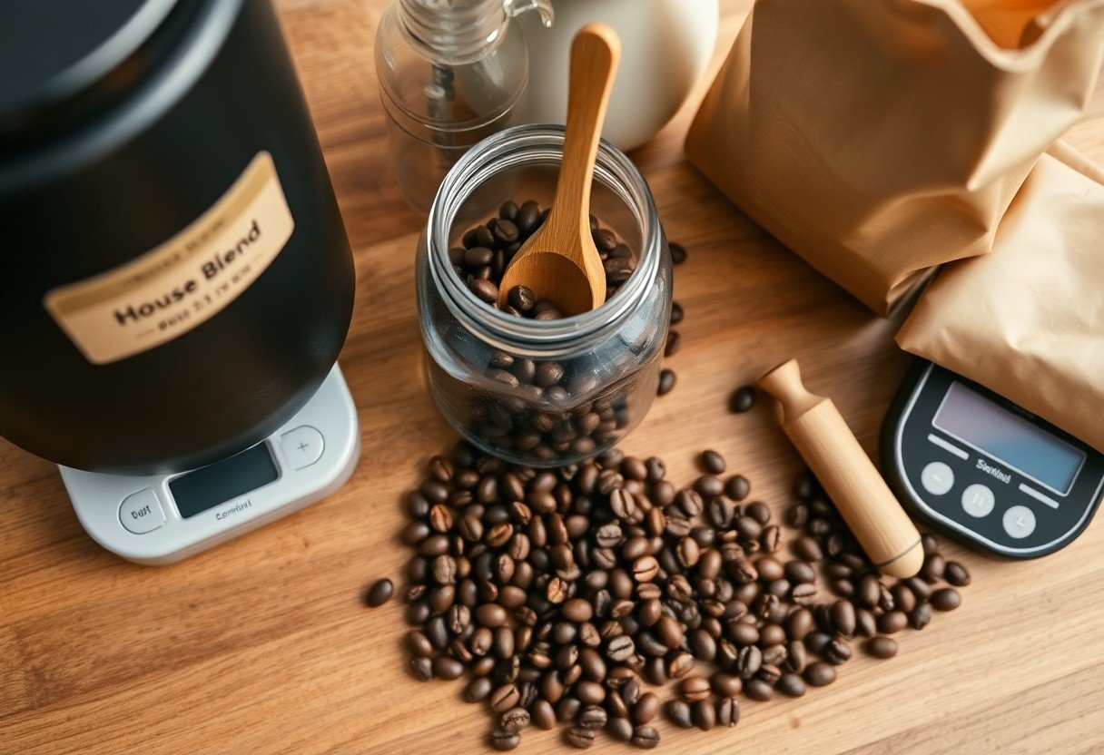 Taking this into account, store your house blend whole beans in an opaque, airtight container away from heat, light, and moisture. Buy smaller quantities, grind just before brewing, and avoid storing beans in the fridge or freezer for daily use; one-way-valve bags or sealed jars at room temperature preserve aroma best.